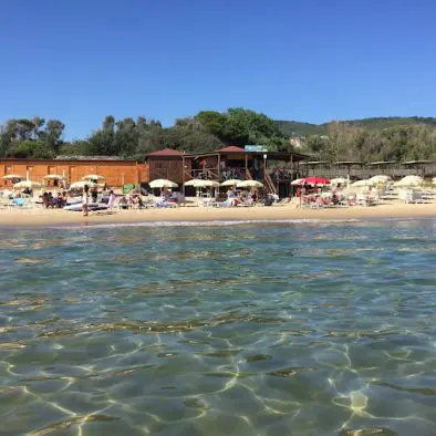 Sia che cerchiate relax o divertimento, troverete sulla spiaggia ciò di cui avete bisogno: ombrelloni, sdraio e lettini, campo da beach volley, spogliatoi e docce calde e fredde. Il bar e tavola calda servono prelibatezze per il pranzo e pizza cotta nel forno a legna, mentre il ristorante offre deliziosi piatti di pesce pescato localmente.
