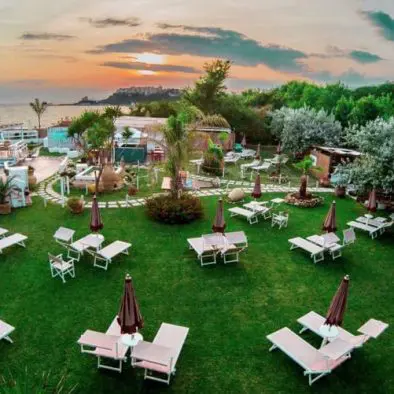 La spiaggia, caratterizzata da ciottoli, scogli e sabbia, offre un mare cristallino circondato da una lussureggiante vegetazione. Il lido presenta un bar con cocktail e aperitivi, noleggio carte da gioco e animazione per tutte le età. Il ristorante propone prelibatezze a base di pesce, servite su una terrazza panoramica con vista sul mare. Vengono organizzate feste e serate con musica e DJ set.
